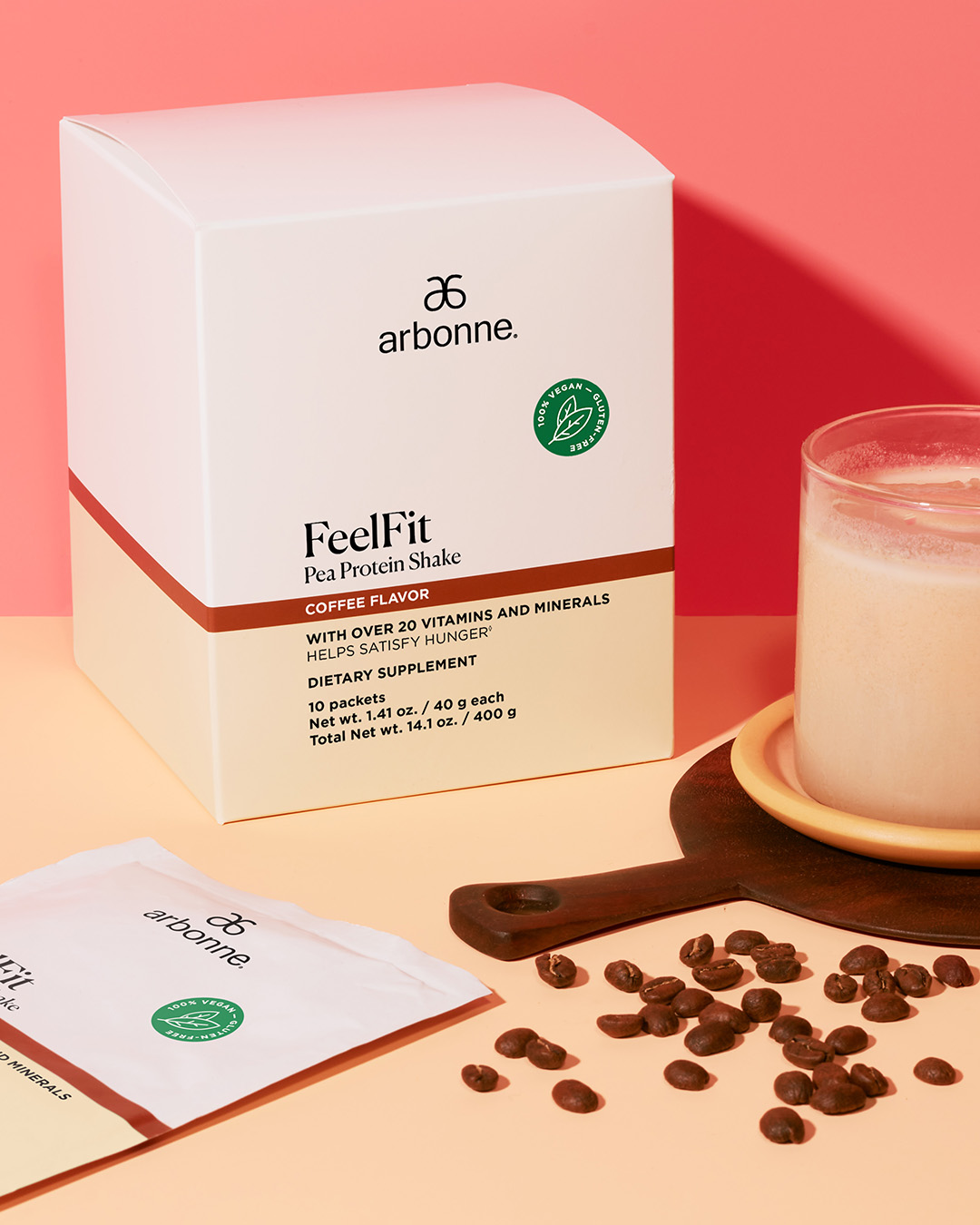 Arbonne for Weight Loss - Does It Work? | Coach Brittany Morgon The Arbonne diet also suggests you eat 1 meal a day and replace your other 2 meals with a shake "meal" following their recipe guidelines. The guidelines outline that a shake should include: "- 2 scoops of FeelFit Pea Protein Shake - 1/3 cup of veggies such as spinach, kale, or pumpkin - 1/4 cup of fruit such as berries or apples