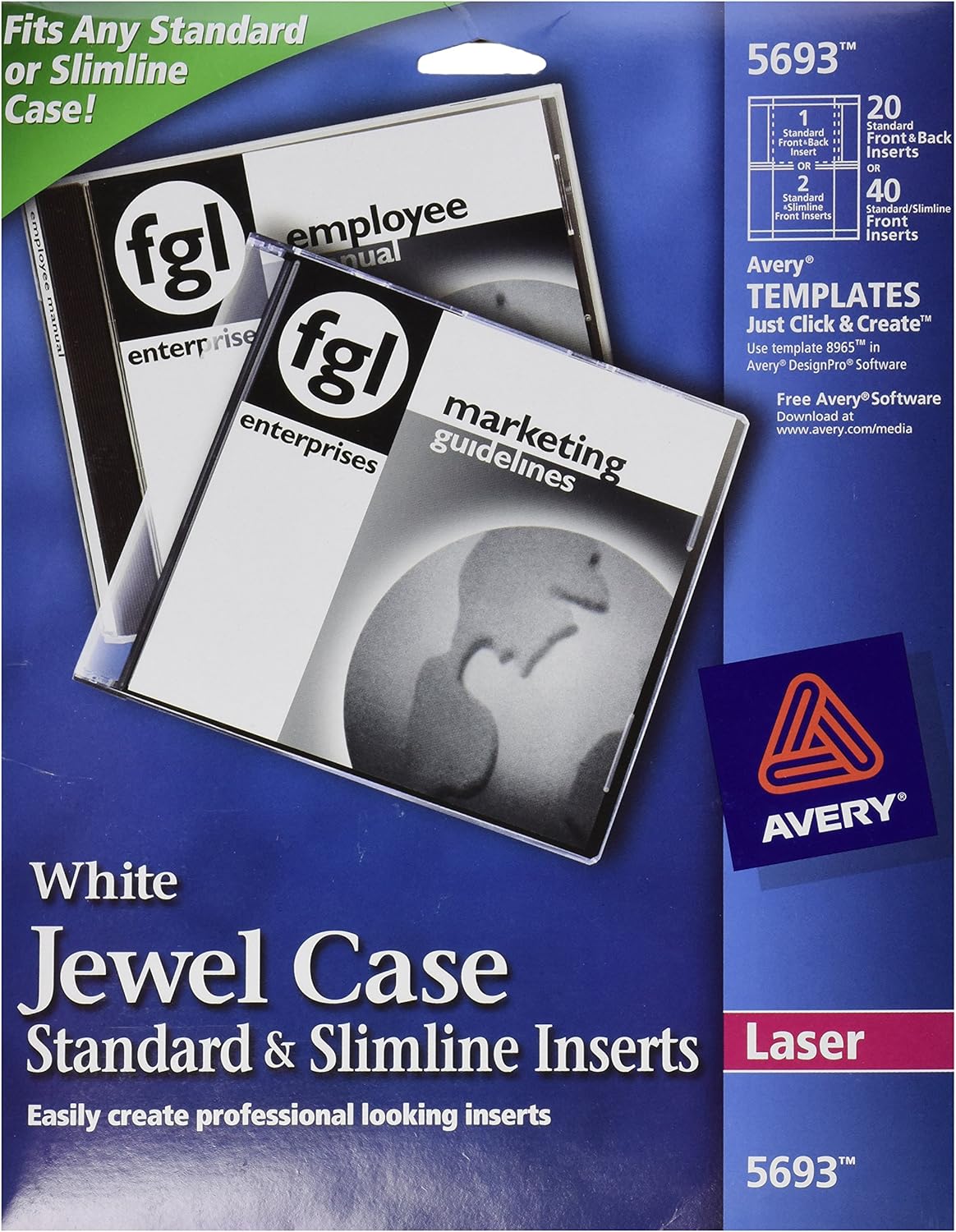 Avery 8693 Jewel Case Standard & Slimline Inserts; Matte ... - Micro Center Mfr Part #: 8693. UPC: 072782086930. Matte. 20 Inserts. Customize your CD/DVDs for easy identification, organization, or to add eye-catching graphics. Easy to format using pre-designed layouts, photos, and clip art in Avery DesignPro Media Software. Avery Jewel case inserts have a precise fit.