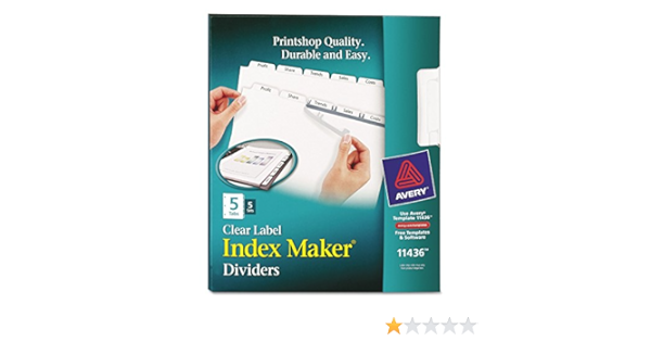 Avery template 11436. Paper Cutting Dies, Tools & Machines & More - Dies & Cutting Shop our large selection of die cuts for paper crafting from the world's largest selection of paper art crafting supplies at Simon Says Stamp. We have the widest variety and selection of dies & cutting tools & supplies for crafting. Avery Avery Avery Industrial ... Blank Labels . Custom Printing . Templates . Search Avery Products submit. Blog ... Home Products Dividers 11436 . For the latest ... Avery® Index Maker Easy Apply™ Dividers 5-Tab - 11436 - Template Avery ® Print & Apply Clear Label Dividers Template. with Index Maker ® Easy Apply™ Labels for Laser and Inkjet Printers, 5 tabs. 11436 Avery® 11436 -Print & Apply Clear Label Dividers with Index ... Avery ® Print & Apply Clear Label Dividers with Index Maker ® Easy Apply™ Labels for Laser and Inkjet Printers, 5 tabs 5 Tabs / 5 Sets 11436 Quantity $ 36.99 Regular Price $ 36.99 Add to Cart Add to Favourites Print & Apply Clear Label Dividers let you organize your binder quickly and easily with professional results.