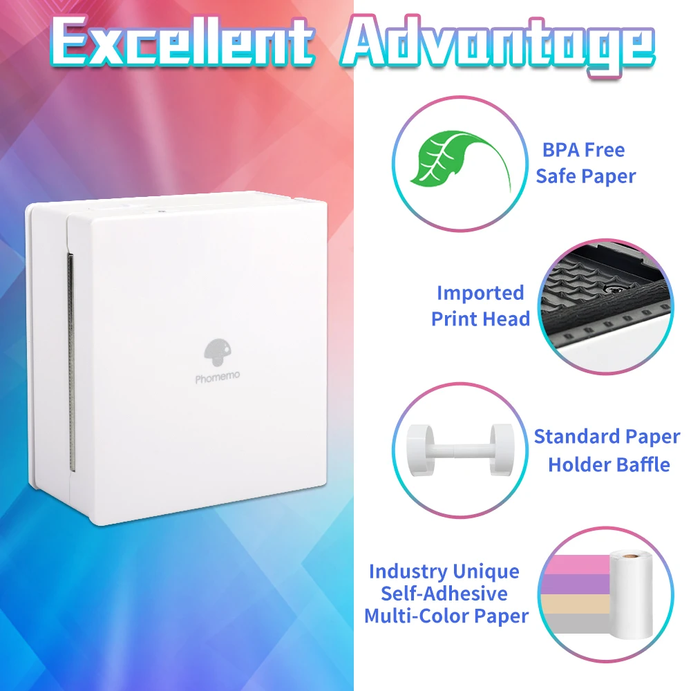 Phomemo Mini Printer M02 Thermal Sticker Label Machine Handheld Wireless Pocket Photo Print for Android IOS Phone Printing