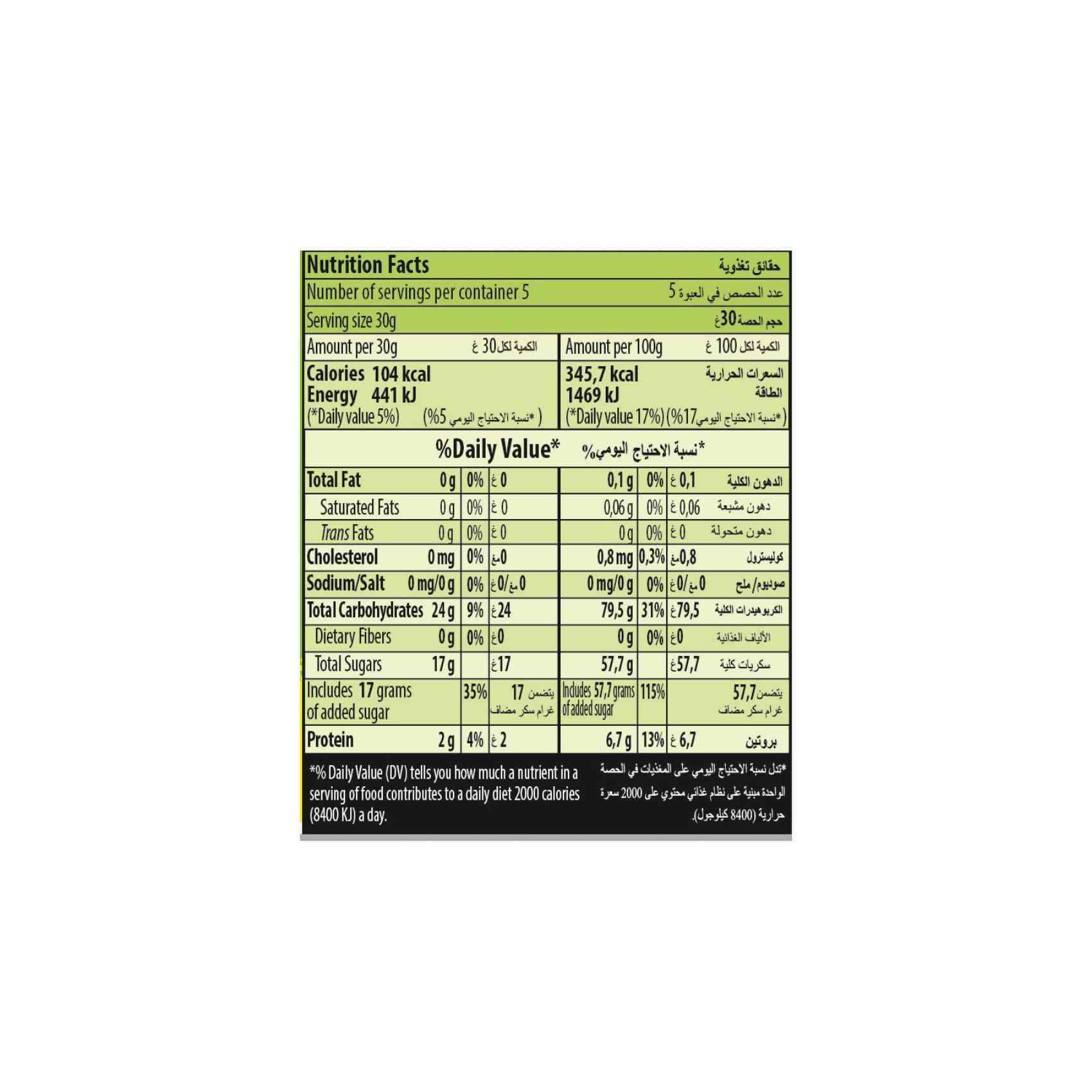 Calories in Haribo Gummy Bears and Nutrition Facts - FatSecret Nutrition Facts Serving Size 13 pieces (30 g) Amount Per Serving Calories 100 % Daily Values* Total Fat 0.00g 0% Saturated Fat - Trans Fat - Cholesterol - Sodium 10mg 0% Total Carbohydrate 23.00g 8% Dietary Fiber - Sugars 14.00g Protein 2.00g Vitamin D - Calcium - Iron - Potassium -