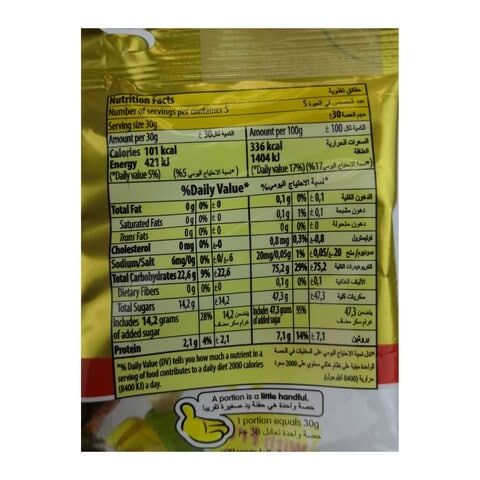 Haribo Goldbears Gummi Candy, 5.29 oz - Walmart.com Haribo Goldbears Gummi Candy, 5.29 oz. USD $3.67 69.4 ¢/oz (2.5) 2.5 stars out of 2 reviews 2 reviews. USD $3.67 69.4 ... Trolli Sour Crunchy Crawlers Gummi Worms Candy Bag, 6.3 Oz. Add. $9.50. ... Nutrition information. Nutrition facts. Refer to the product label for full dietary information, which may be available as an alternative product ... 8 Fun Facts About Gummies | Mental Floss Ten kilos of chestnuts or 5 kilos of acorns will land you a bag of goldbären (a.k.a. gold-bears). 3. Worming their way in. America didn't get a taste of gummi bears until 1982, when Haribo opened... Calories in Haribo Gummy Bears and Nutrition Facts - FatSecret Nutrition Facts Serving Size 13 pieces (30 g) Amount Per Serving Calories 100 % Daily Values* Total Fat 0.00g 0% Saturated Fat - Trans Fat - Cholesterol - Sodium 10mg 0% Total Carbohydrate 23.00g 8% Dietary Fiber - Sugars 14.00g Protein 2.00g Vitamin D - Calcium - Iron - Potassium -
