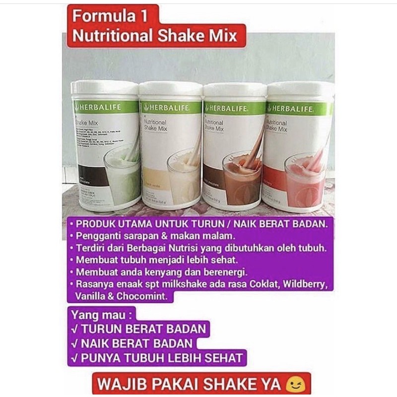 Core Nutrition Formula 1 | Herbalife Nutrition U.S. FORMULA 1 Treat your body to a healthy, balanced meal in no time! Not only are these shakes easy to make, they're also delicious. With 21 essential vitamins and minerals - and in a variety of flavors - weight management never tasted so good! Formula 1 Formula 2 Formula 3 Formula 1 Healthy Meal Nutritional Shake Mix: Banana Caramel 750g SKU 2628