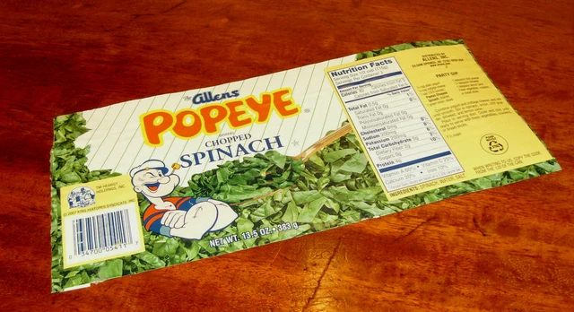 Can Label, "Allens Popeye Brand Spinach," 1965 Product made by Allen Canning Company; 1965 copyright image of Popeye on the label from King Features Syndicate. Keywords. Can labels · Labels (Identifying ...