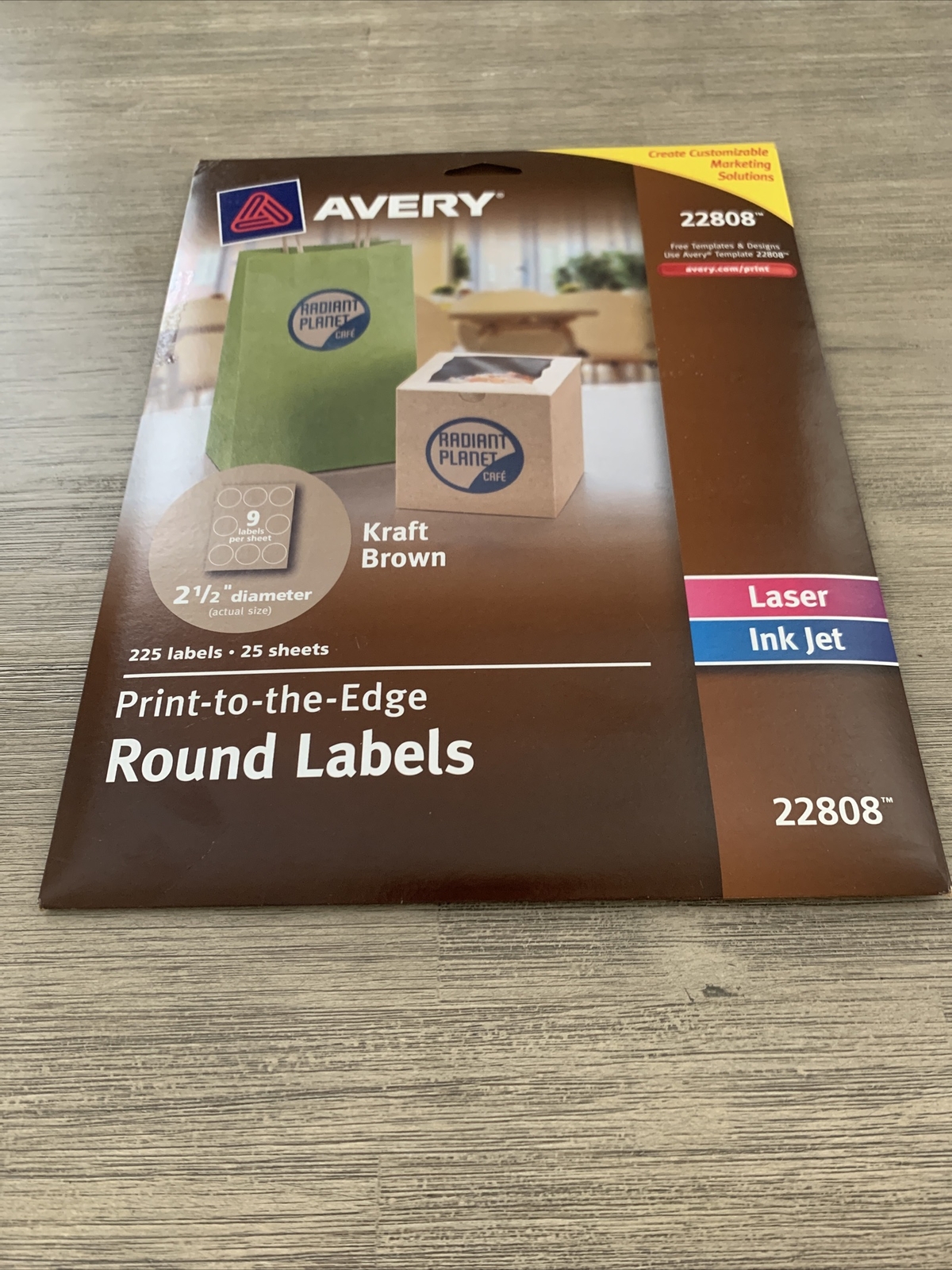 Avery Printable Round Labels, 2.5" Diameter, Kraft Brown, 225 ... - Staples Get Avery Printable Round Labels, 2.5" Diameter, Kraft Brown, 225 Customizable Labels/Pack (22808) fast and with free shipping on qualifying orders at Staples.